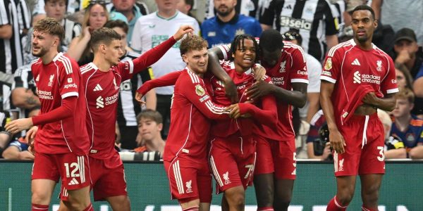 Pese al dominio en el juego de los locales, fueron los hombres de Arne Slot los que abrieron el marcador merced a un disparo raso lejano de Ryan Gravenberch, de regreso tras cumplir una suspensión, que sorprendió al arquero Nick Pope después de tocar en Fabian Schär y en el poste (35).